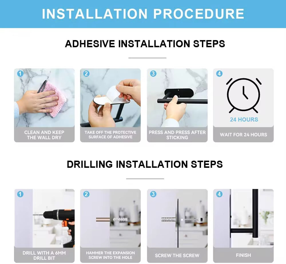 Easy Installation – Stick on smooth surfaces with strong adhesive (no drilling) or screw into rough walls—your choice.