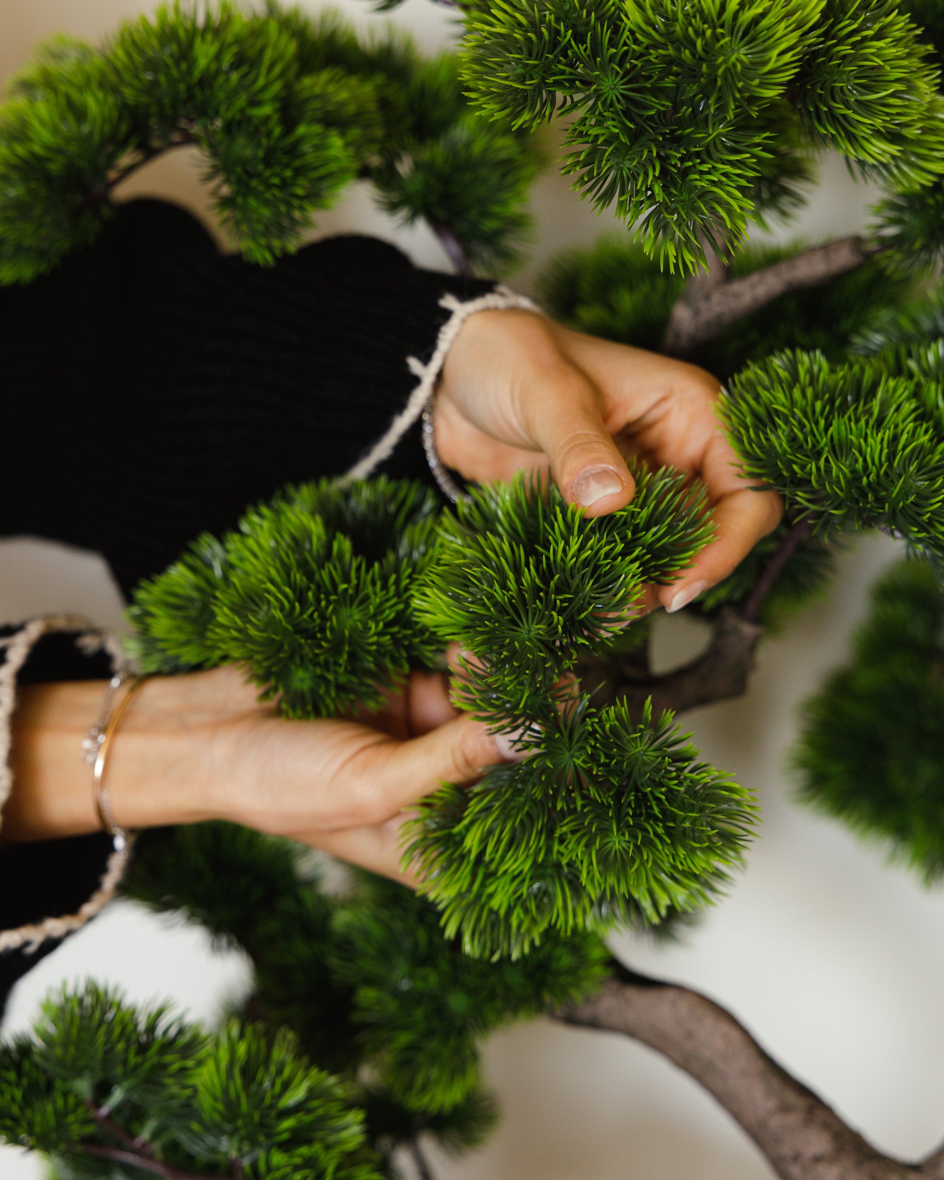 أشجار البونساي الاصطناعية لدينا مصنوعة من مواد ABS و PVC عالية الجودة، ولها شكل وملمس واقعيان، مما يجعلها تبدو كأشجار بونساي حقيقية.