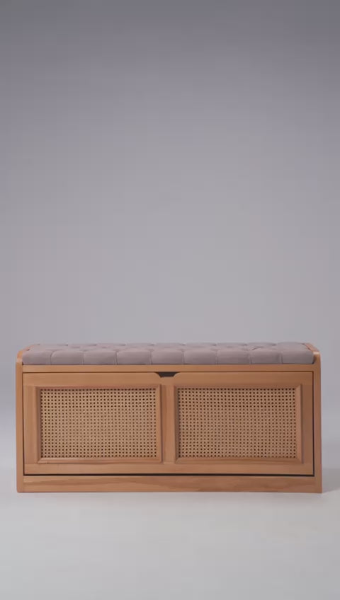 This adorable entryway seat provides a spot for pulling on boots, but the ingenious inner compartment also hides surplus shoes. It comes in 1 color with natural rattan paint, could be placed in the Entryway or room