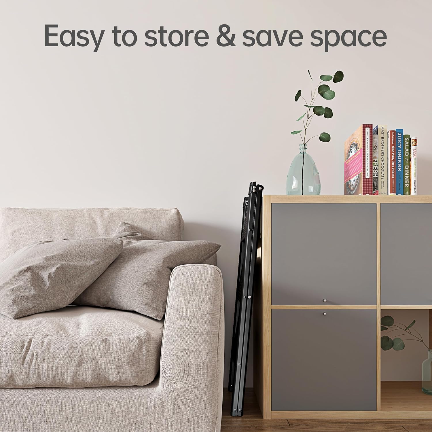 Folds to only 2.4cm thickness, compact enough to slide under a bed, stash in a closet / behind a door, or against a wall, ideal for storing away in narrow household gaps. It's portable in your car trunk, or can be carried everywhere.